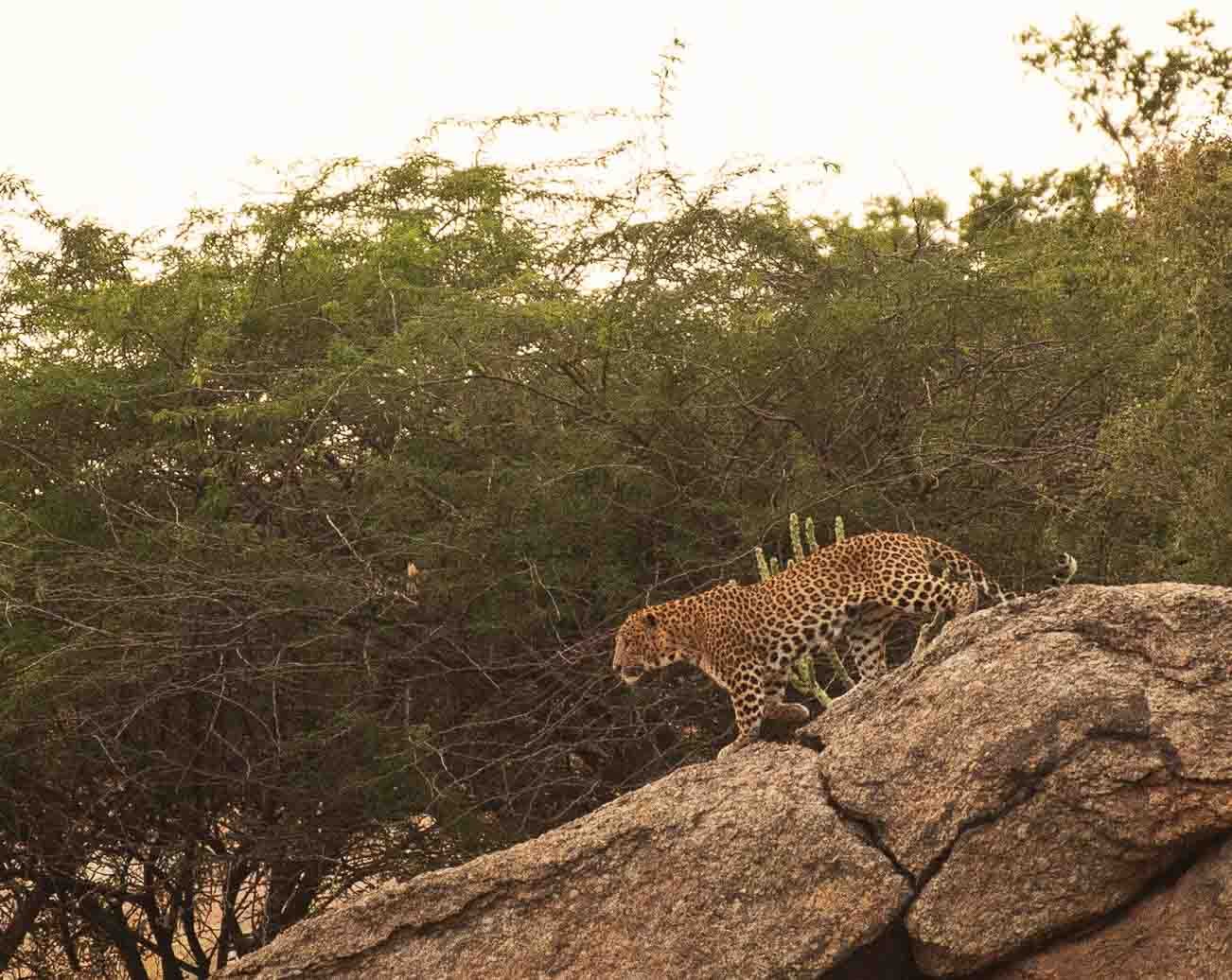 Open jeep drives from the lodge move into ancient hills dotted with boulders that have watched the forest for centuries. From these vantage points, the rugged landscape stretches below, punctuated by the occasional alarm call of a peacock. The route winds past water bodies and rocky outcrops, each turn building anticipation of spotting leopards in the folds of the rocks.