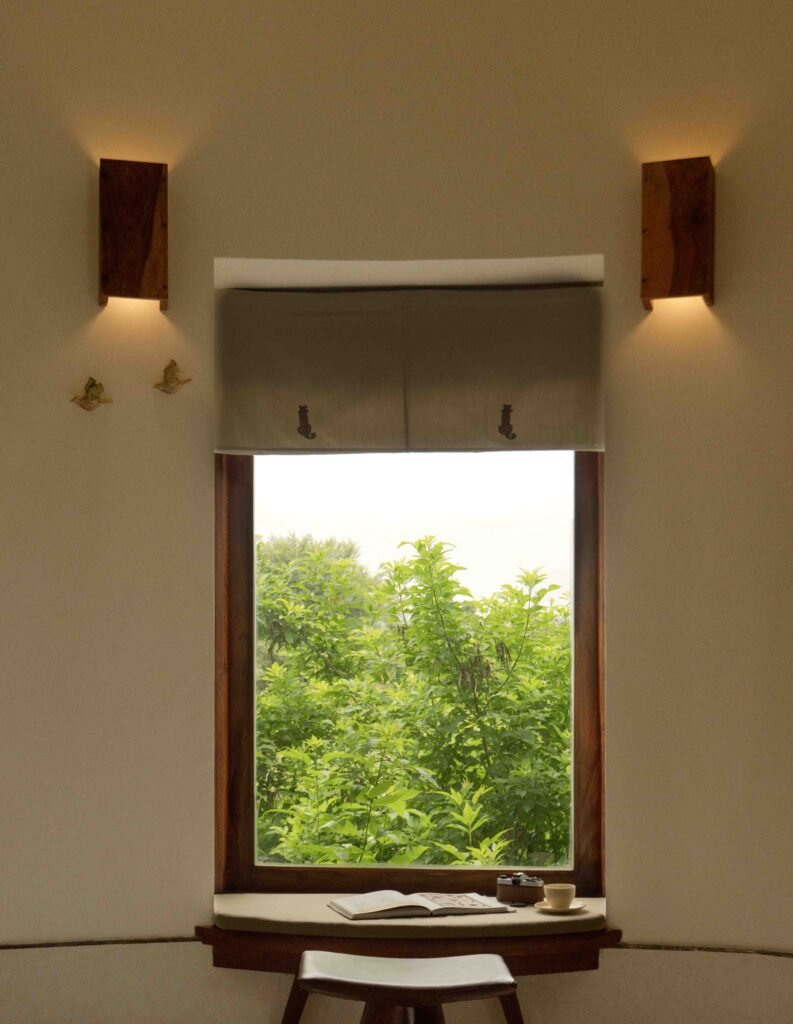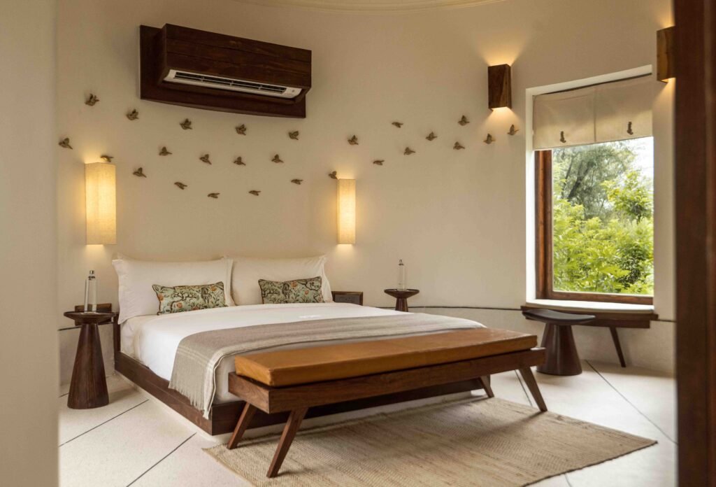The Fort Suites are standalone accommodations with views of the historic Tehla Fort. Each suite features artful character and circular walls, king-sized beds, and two bay windows overlooking grasslands shaded by dhaman grass, home to resident silverbills. One suite features a sit-out space with pond , and all include a private sitting area and a rooftop terrace for open-air dining and quiet conversations. Well-suited for couples seeking a space to rest and reset, the suites offer comfort, privacy, and a connection to the surrounding landscape.