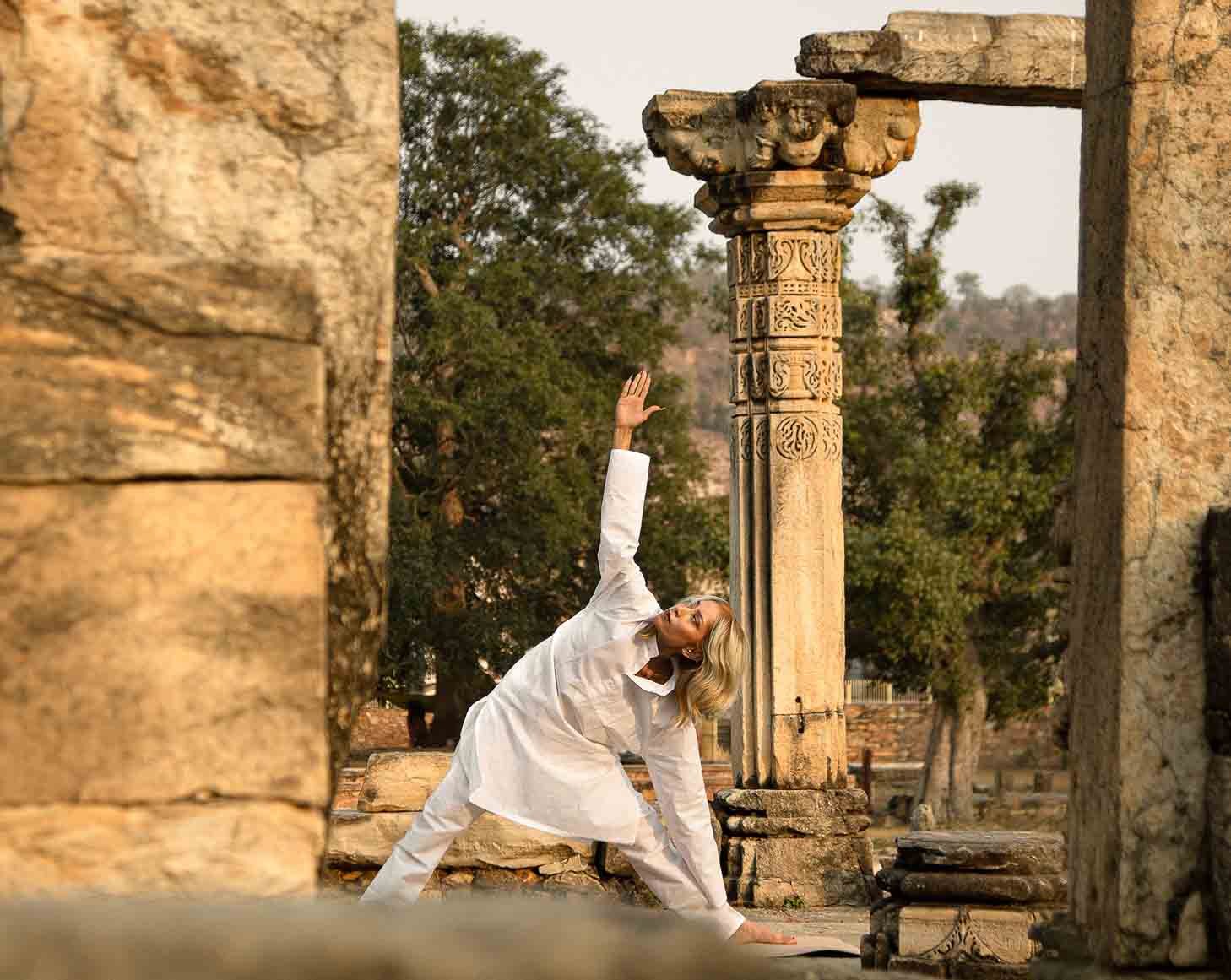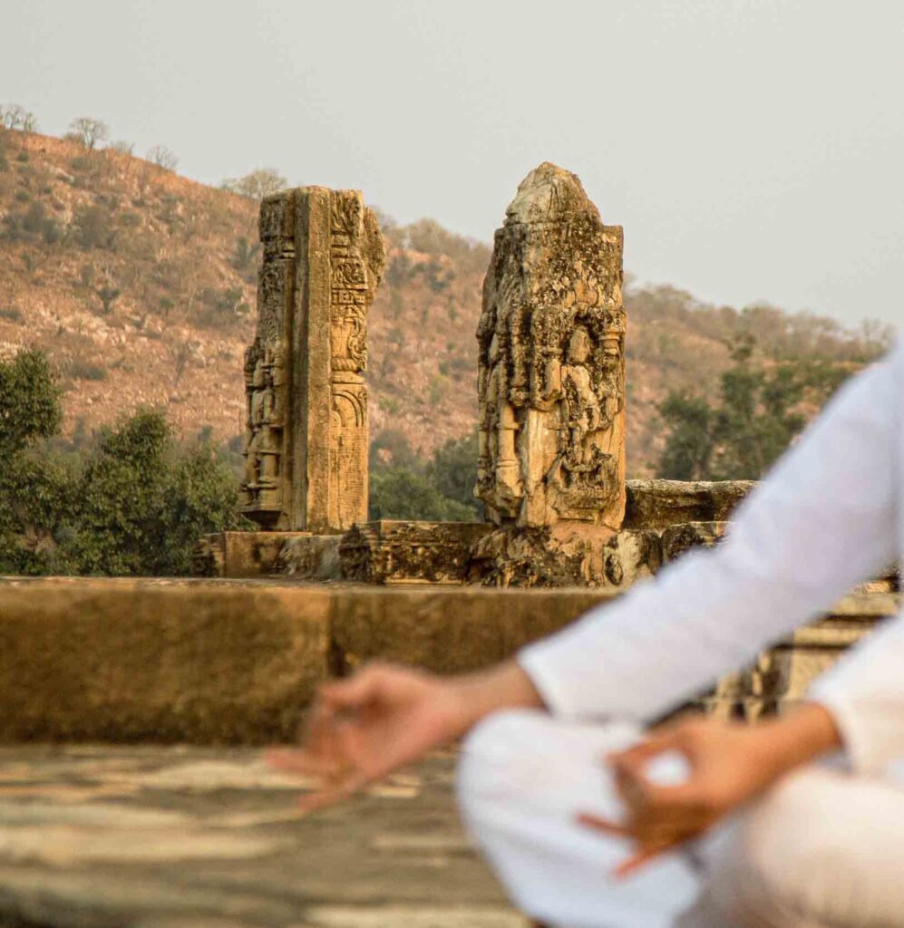 At sunrise, light filters through the carved pillars of the Neelkanth Temple and plays across carvings of deities as hills encircle the site in stillness. The spiritual charge of the ancient ruins deepens meditation, guiding the body and mind, fostering clarity, focus, and a profound connection with the surrounding landscape and sacred energies.